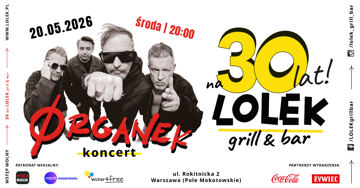 20 maja świętujemy 30 lat LOLKA, a na naszej scenie specjalnie dla Was wystąpi zespół ØRGANEK.